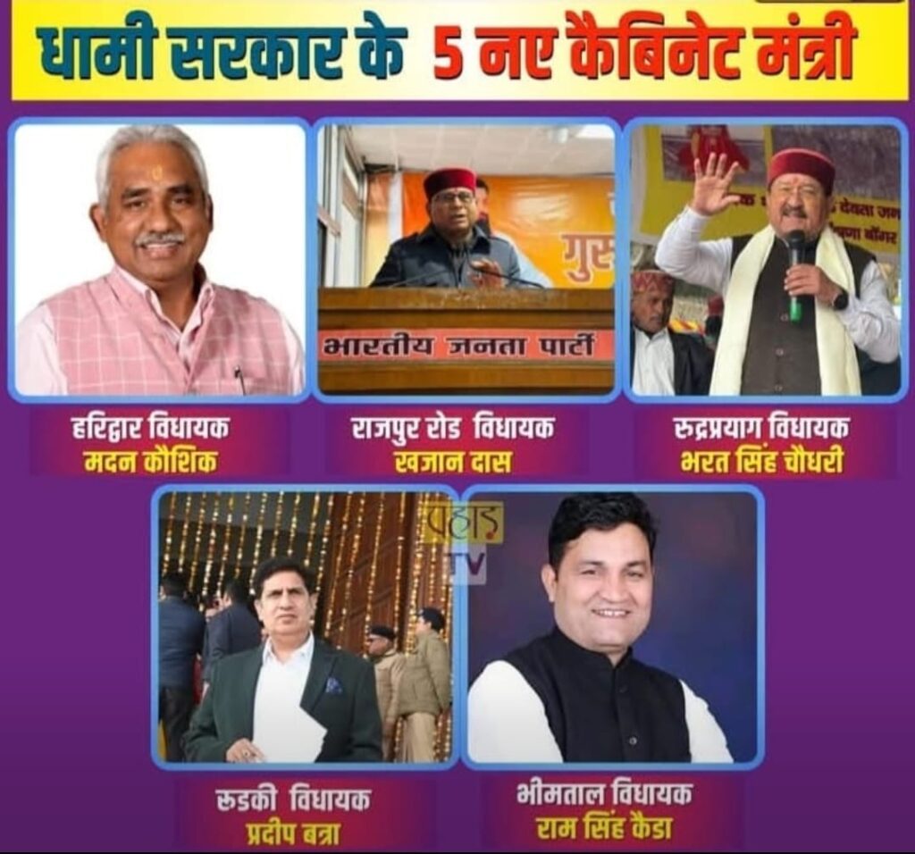 राज्यपाल, रिटायर्ड लेफ्टिनेंट जनरल गुरमीत सिंह नए मंत्रियों को शपथ दिलाई हैं। वर्तमान में धामी मंत्रिमंडल में पांच पद खाली थे।