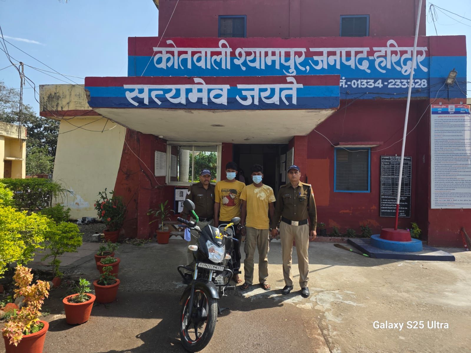 हिरासत में लिये गये आरोपितों के कब्जे से घटना में प्रयुक्त मोटरसाइकिल बरामद की गई गौ तस्करी / गौकशी किसी भी दशा में बर्दाश्त नहीं की जाएगी वरिष्ठ पुलिस अधीक्षक हरिद्वार के निर्देशन में जनपद में अपराध एवं अपराधियों की धरपकड़ हेतु चलाए जा रहे अभियान के तहत प्रभारी निरीक्षक कोतवाली श्यामपुर के नेतृत्व में गठित पुलिस टीम द्वारा मुकदमा संख्या 29/2026 उत्तराखण्ड गौवंश संरक्षण अधिनियम में वांछित चल रहे दो आरोपियों को हिरासत में लिया गया।